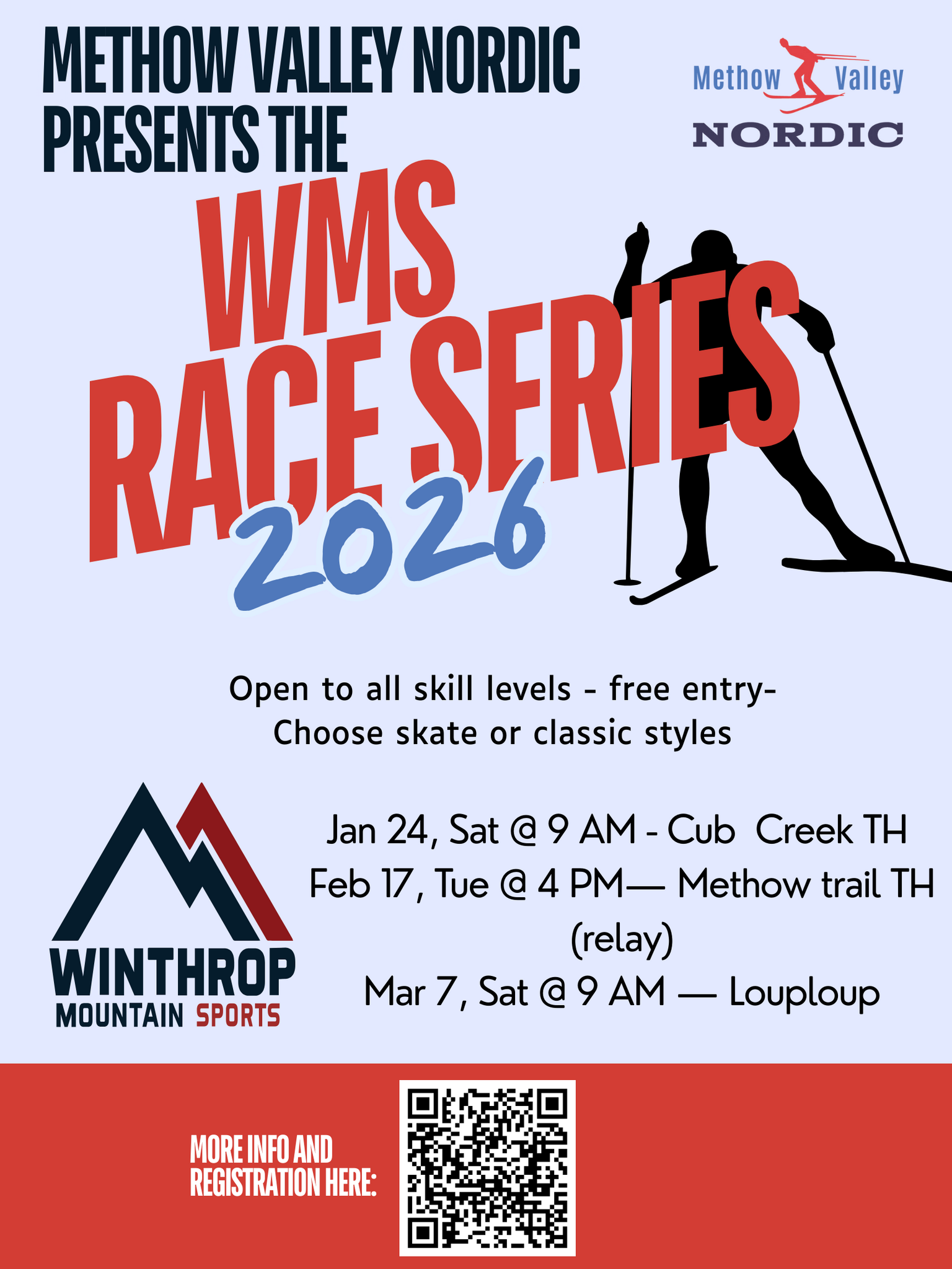 The goal of the WMS Race Series is to create a fun community event where anyone can show up, no matter their experience level or technique. Classic or skate, fast or slow, everyone is welcome to come sweat and have fun together.